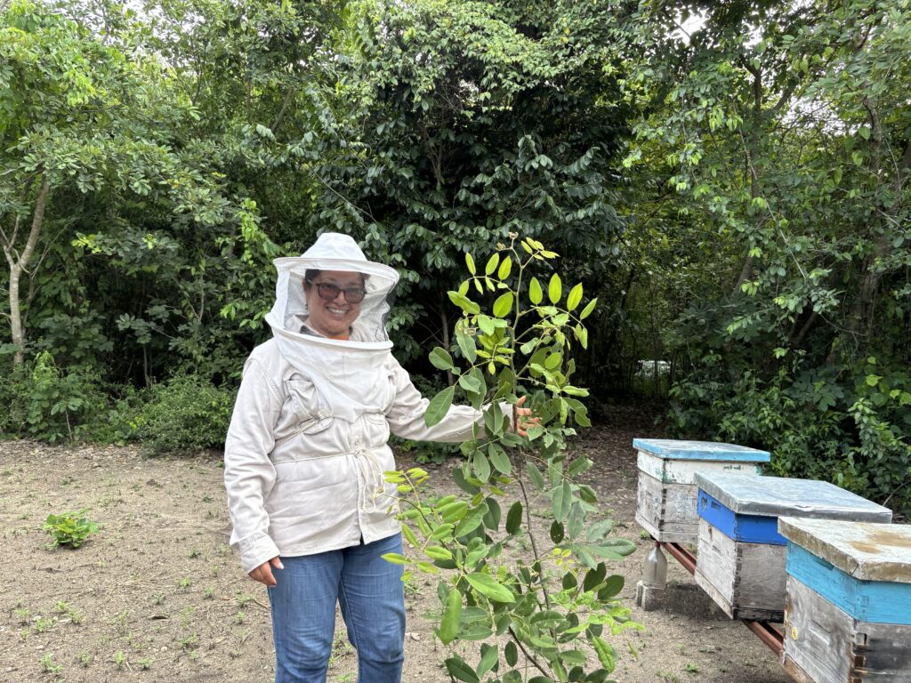 Paola, the beekeeper, grew up in Campeche, in the region where we do our restoration work.
