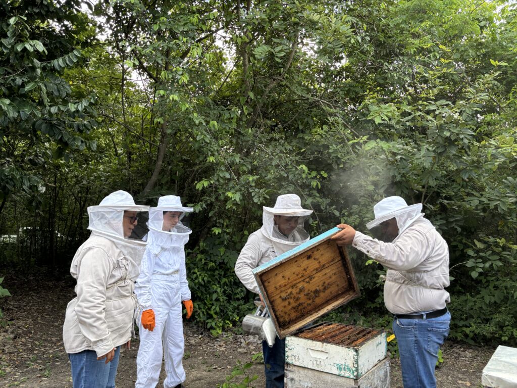 Paola’s partner Chris is from Tlaxcala, Mexico. He grew up around bees. His grandparents had them, his uncle had the and when she invited him to Campeche, he came. He stayed, officially “because of the bees,” but it’s clear the shared work and the shared life kept him there too.