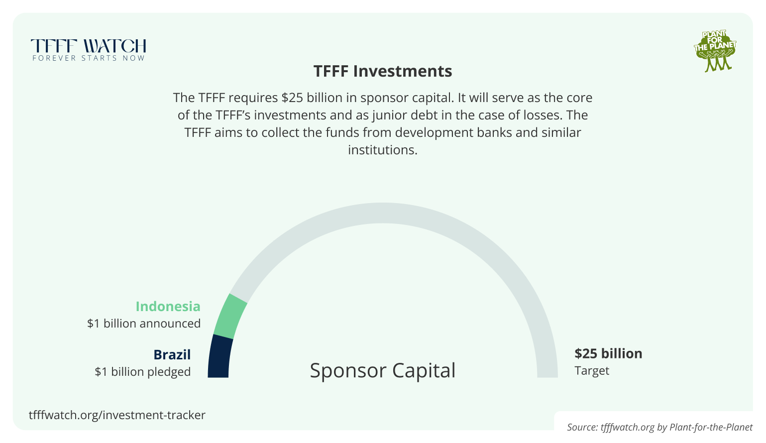 With half of the government funding, the total investment fund would be only half as large, and disbursements could also be only half as high. The exact amount of payments per hectare has therefore not yet been finalized. For a fully funded TFFF, $4 per hectare is planned.