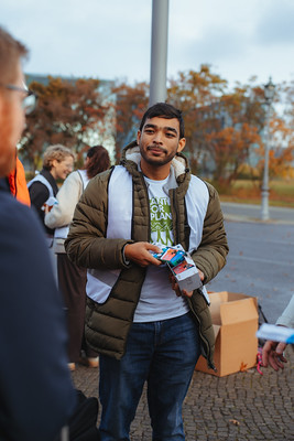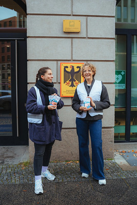 In rund 520.000 Tafeln der Guten Schokolade haben wir unsere Nachricht mit Bundeskanzler Friedrich Merz geteilt: Bitte investieren Sie in die TFFF und schützen Sie die Regenwälder. Darauf zu hoffen, dass Friedrich Merz in den Supermarkt geht und sich die Gute Schokolade mit dem Brief kauft, wollten wir nicht. Daher haben wir unsere Sachen gepackt und sind einfach selbst nach Berlin gefahren, um die Schokolade mit der Botschaft vor Regierungsgebäuden zu verteilen.