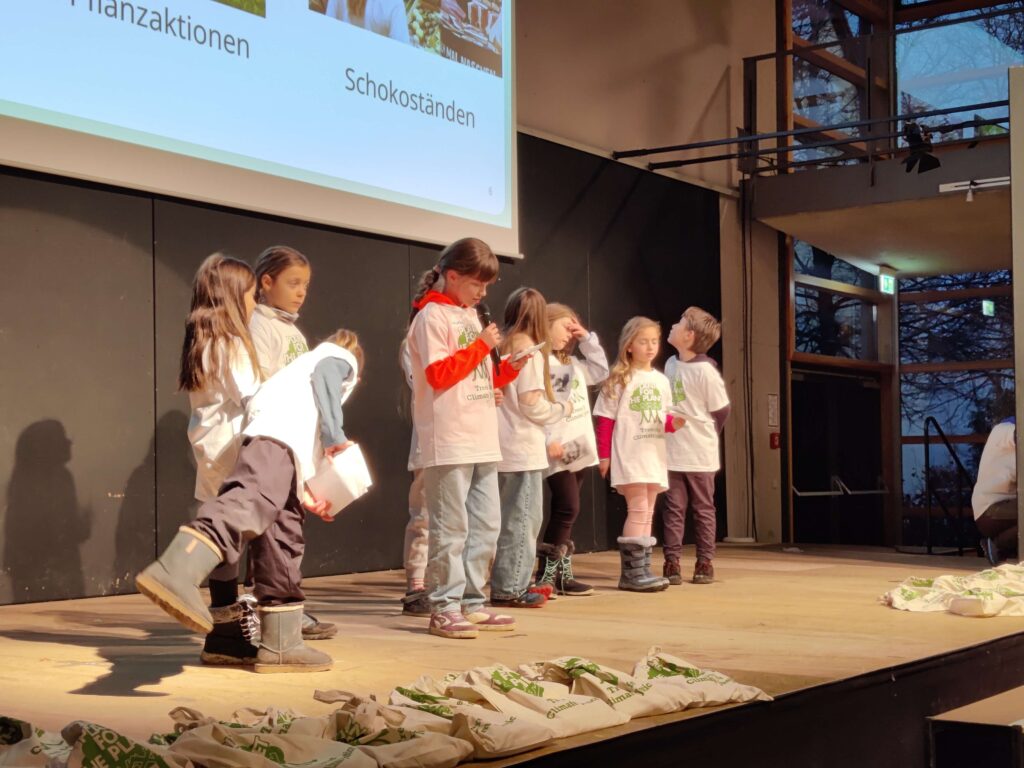Mit neuer Energie nach dem Mittagessen ging es weiter mit dem dritten Teil: der Aktionswerkstatt. Dabei bekamen die Teilnehmenden viele spannende Ideen für Aktionen, die sie gemeinsam mit Plant-for-the-Planet durchführen können, um anderen Menschen zu zeigen, wie wichtig Klimagerechtigkeit und Einsatz gegen die Klimakrise ist. Die Kinder suchten eine konkrete Aktion aus, die sie nach der Akademie umsetzen möchten – zum Beispiel einen Vortrag auf dem Schulfest oder eine Baumpflanzaktion. Eine kleine Gruppe von Kindern erklärte sich auch bereit, bei der Abschlussveranstaltung Bilder des Akademietages und eine kurze Präsentation über Plant-for-the-Planet vorzuführen.