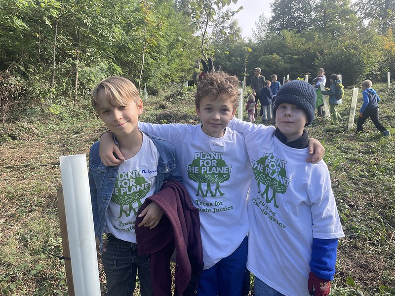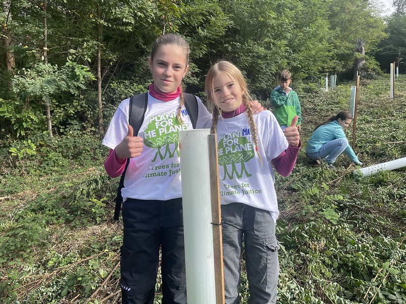 Mit neuer Energie nach dem Mittagessen stand nun die Pflanzaktion im Mittelpunkt. Auf der Pflanzfläche lernten die Kinder mehr über den Wald und die Natur und pflanzten selbst Bäume! So können sie erleben, dass sie mithelfen können, die Welt zu verbessern.