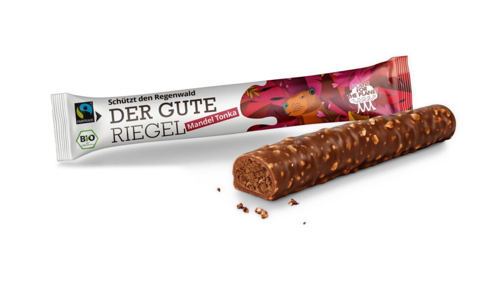 Tutzing, 5. März 2026. Nachdem mit Die Gute Schokolade bereits über 11 Millionen Bäume gepflanzt wurden, bringt Plant-for-the-Planet ein neues Produkt auf den Markt: Der Gute Riegel. Ab Mitte März wird Der Gute Riegel in der Geschmacksrichtung Mandel-Tonka bundesweit in dm-Märkten erhältlich sein – und das natürlich Bio- und Fairtrade-zertifiziert. Das Besondere: Kund*innen schützen mit jedem Kauf den Regenwald.